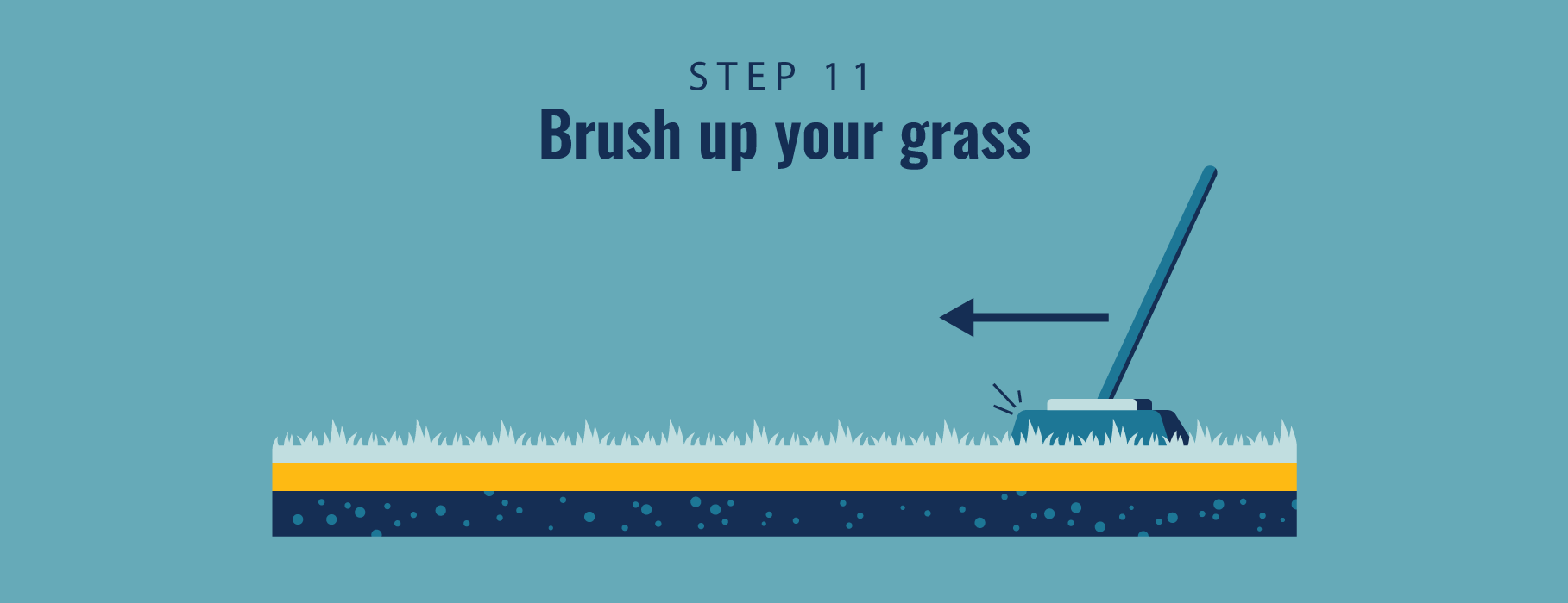 For a final touch use a broom to brush up the fibers of the grass (against the grain) to fluff them up and help them appear more natural.